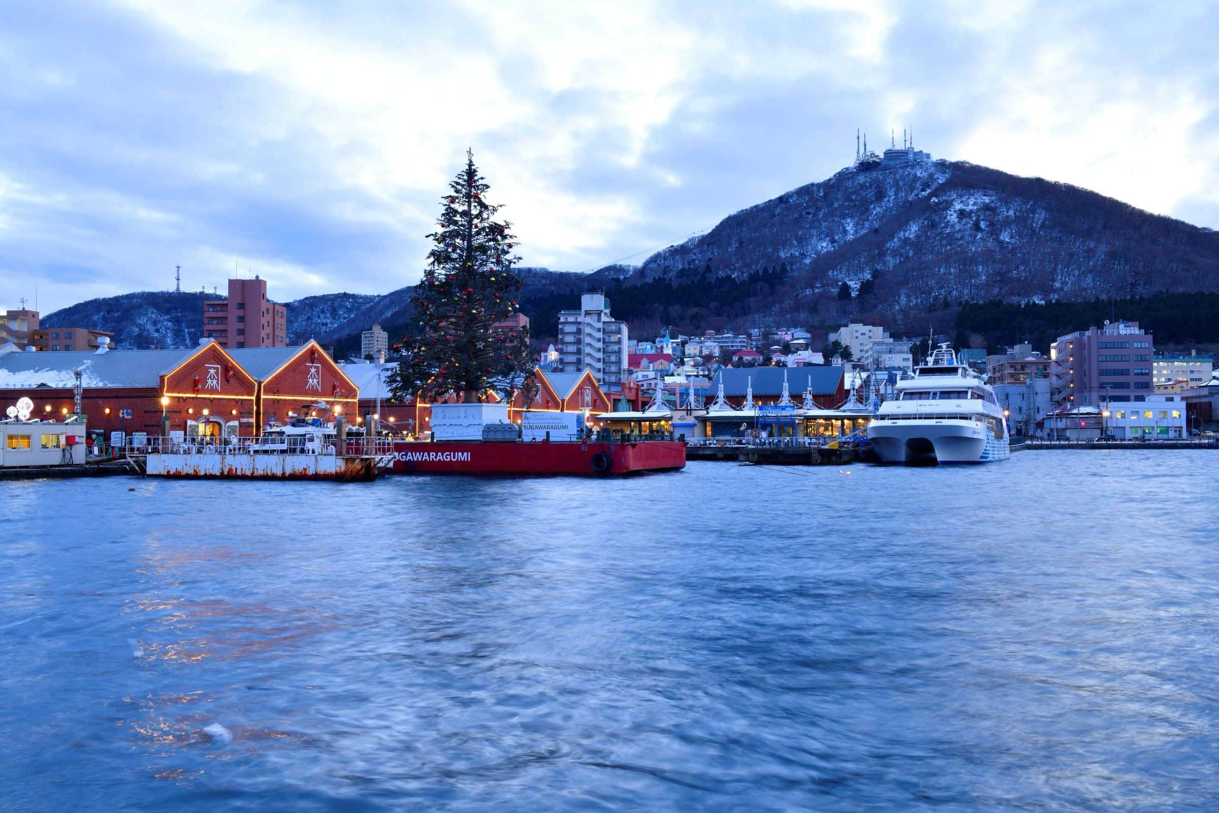 函館ベイエリアにて巨大クリスマスツリーが飾ってます!!