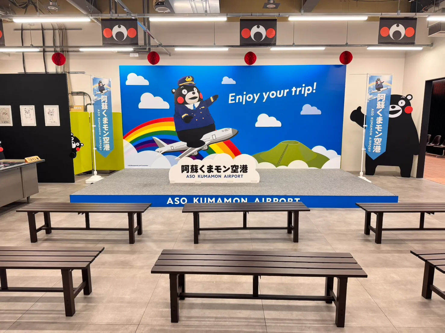 熊本のマスコットキャラクターのくまモンがみなさんをお出迎え🛬