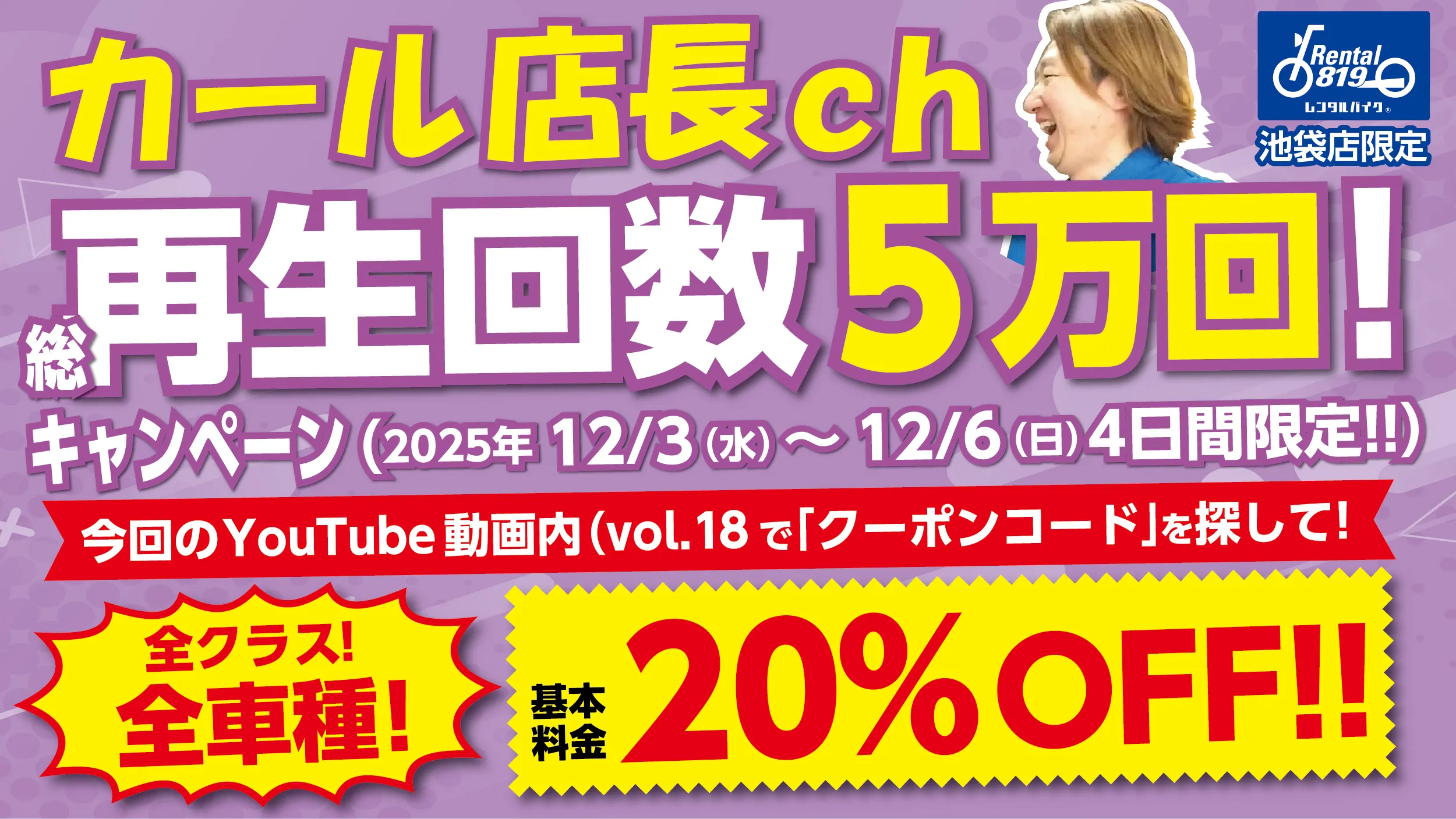 ℹ️全車種20%OFF カール店長ch 総再生回数5万回キャンペーン✨👀