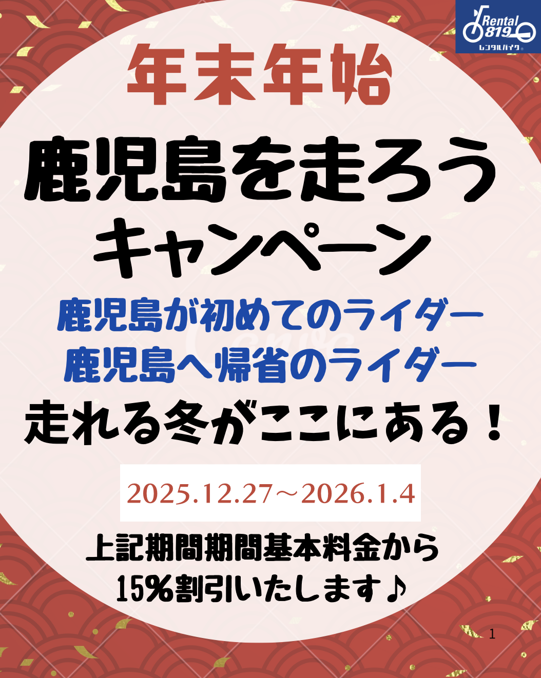 【15%OFF✨】年末年始 鹿児島を走ろうキャンペーン!!