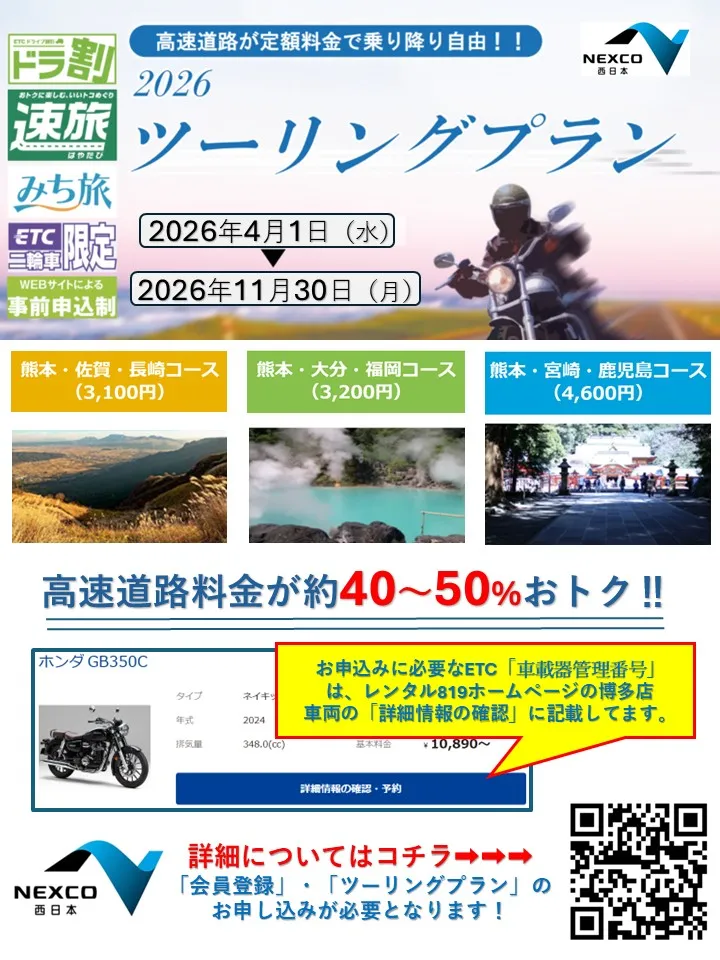 ツーリングプラン2026』 ▲40%~50%お得