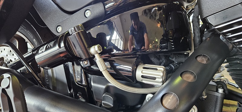 ハーレーダビッドソンのソフテイルモデルはモノサスペンション(一本タイプ)なので